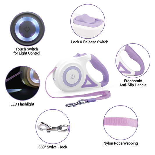 Dog Leash, 16ft with Light, Anti-Slip Handle, One Button Brake & Lock Tangle-Free Dog Retractable Leash