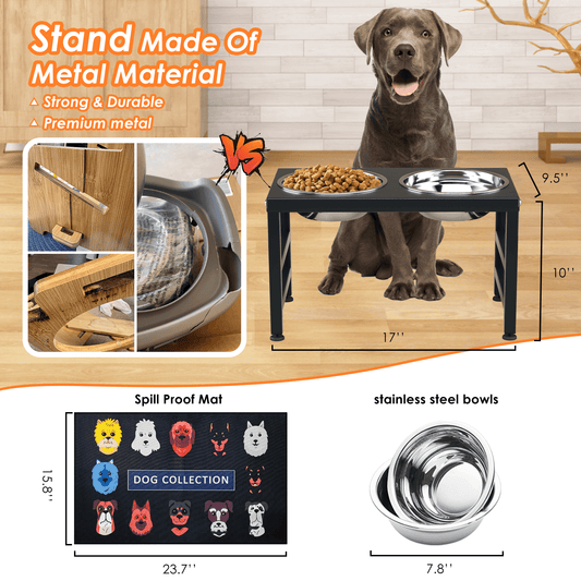 Dog Bowl Stand for Large Dogs with Sprill Proof Mat, Dog Food & Water Bowls 10" Tall Dog Feeder