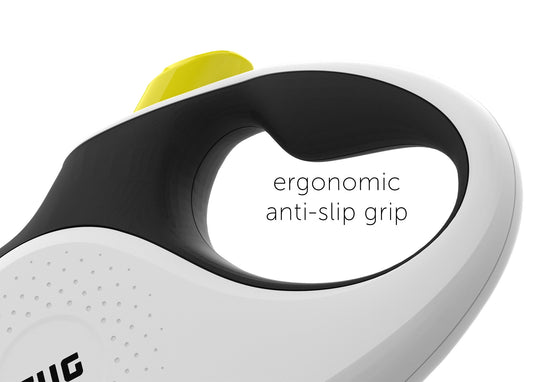 Dog Leash | 16 ft Strong Nylon Tape | One-Handed Brake, Pause, Lock (Medium, White/Neon Yellow), 1 Count