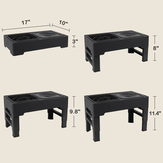 Dog Bowls with Slow Feeder, Adjust 4 Heights for Small Medium Large Dogs, Black